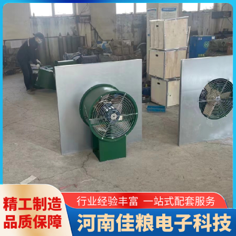 轴流风机:直接安装在开放空间(仓顶/侧壁),快速排热、熏蒸气体循环;但无法克服高阻力;